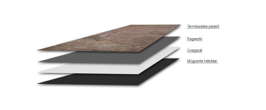 100%-ban természetes kő felület, üvegszálas műgyanta rétegbe ágyazva